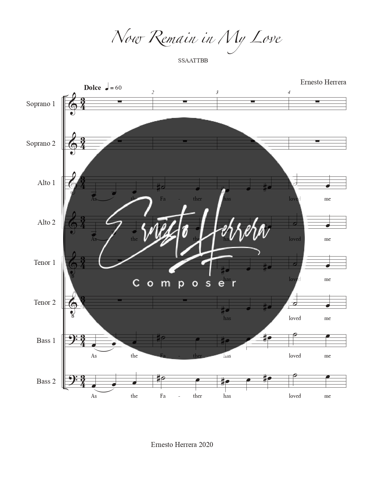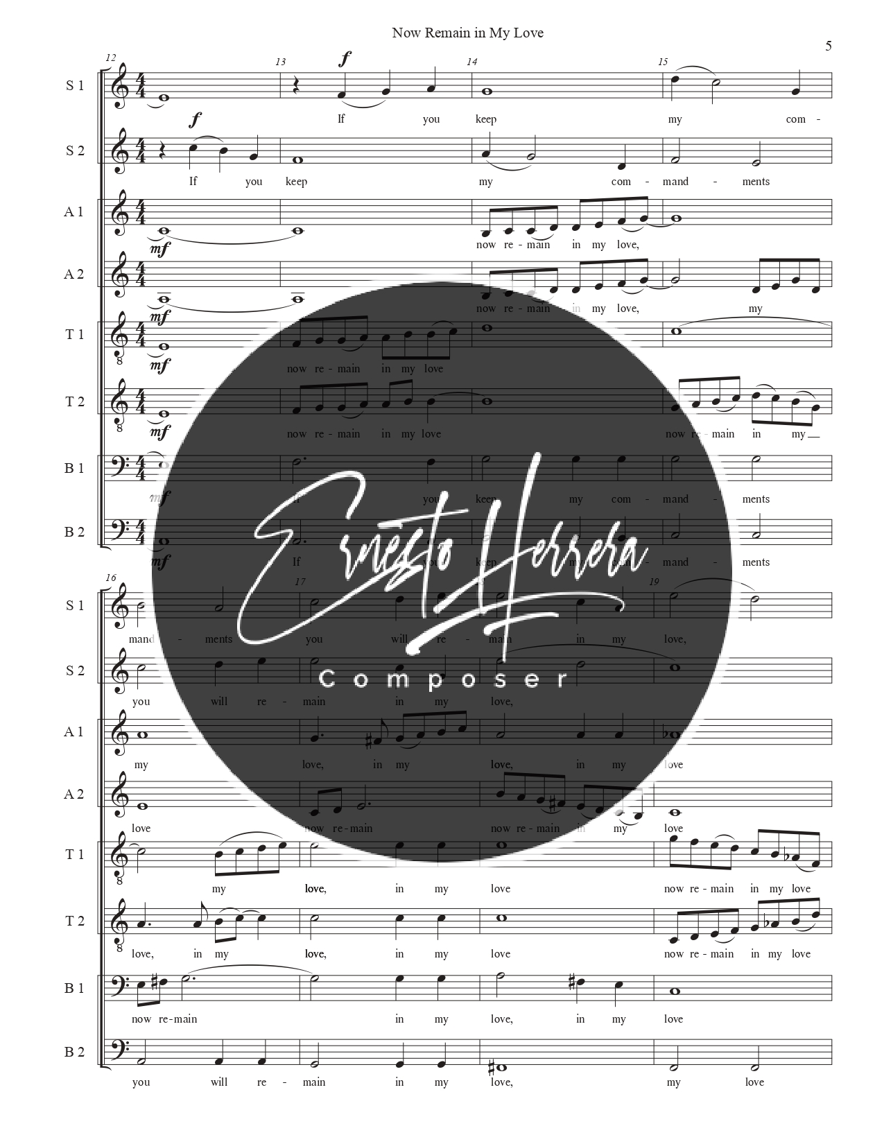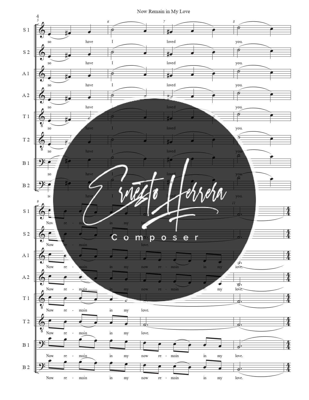 Presents a captivating choral experience. This unique piece blends rich polyphony with jazz-inspired harmonies, delivering an unparalleled auditory journey. Meticulously crafted sonic textures and elegantly simple melodic lines emanate exceptional beauty. «Now Remain in My Love» is ideal for choirs seeking distinctive repertoire that marries musical sophistication with accessibility.